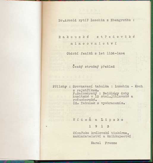 öhmischer Münzen Praha 1854 "xerokopie" 2 svazky
