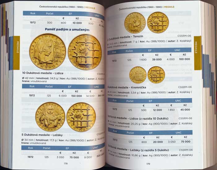 (všechny typy mincí vyobrazeny +dostupné docílené ceny na aukcích