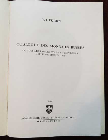 185. Petrov V.I.: Katalog ruských mincí od r. 980 - 1899 vyd. Moskva