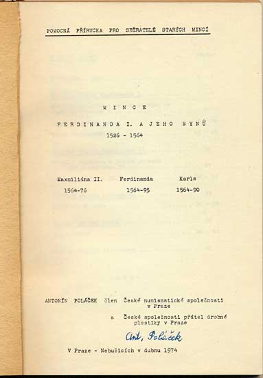 Ferdinanda a Karla) 1526 - 1564 - pomocná příručka pro sběratele