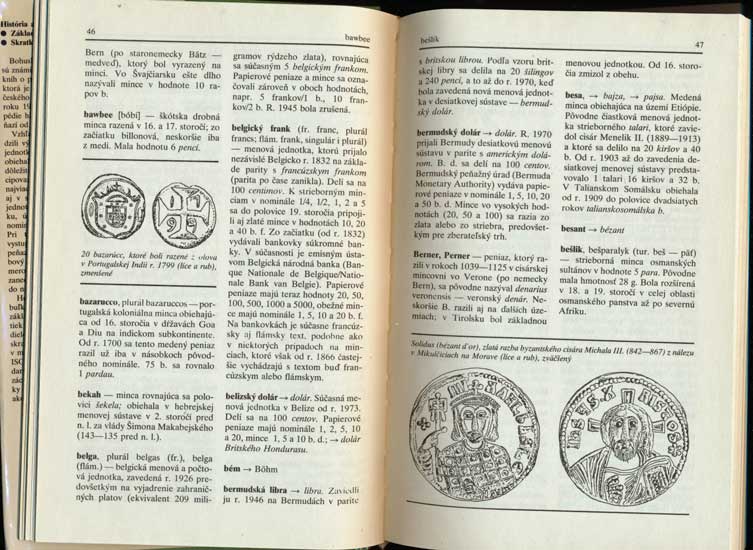 - slovník platidel všech dob- 268 stran +40 foto tab. +perovky vyd.: OBZOR Bratislava 1983 mírně poškoz. vazba, jinak |