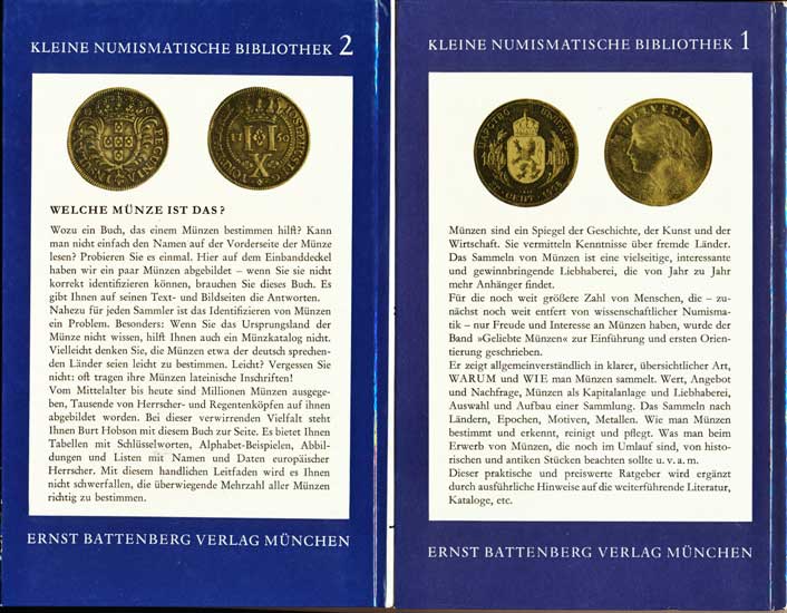 vyd. München 1969 144 stran + foto vázáno 2/ Hobson B.: Münzen Bestimmen 3. vydání 1970 88 stran váz áno 2 svazky německy tém. |