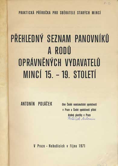 | 379. | Poláček A.: Přehledný seznam panovníků a rodů oprávněných vydavat