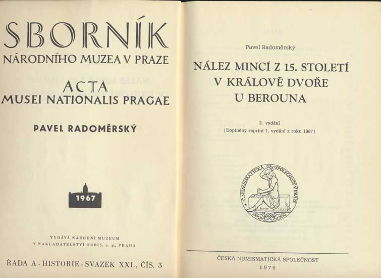 | 396. | Radoměřský P.: Nález mincí z 15. století v Králově Dvoře u Beroun