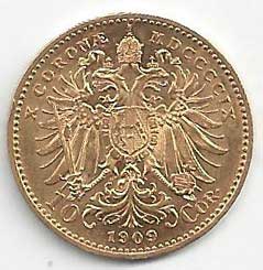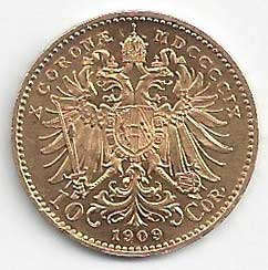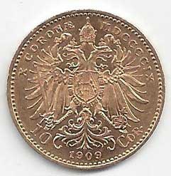 | 65. | 10 Korun 1909 bz, Marschall | 1/0 | 4000,- | 4200,- |