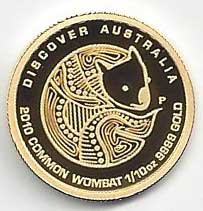 | 83. | 15 Dollars 2010, vombat, 1/10 oz. Au .9999, kapsle | PP | 2900,- | 4000,- |