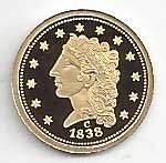 | 87. | 2 1/2 Dollars 1838 C, zmenšená zn.KOPIE, 0,5 g Au .585, 11 mm, kapsle | PP | 400,- | 400,- |