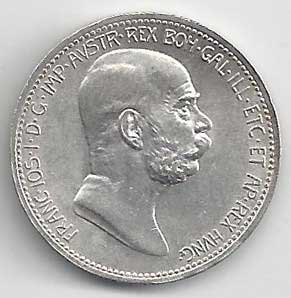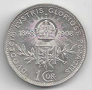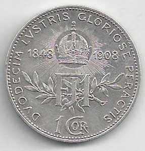112. 1 Koruna 1908 bz, jubilejní, 60 let vlády 0/0 200,- 380,-