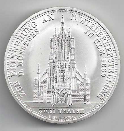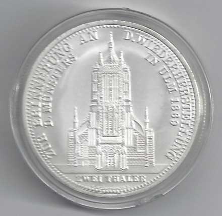 115. 2 Tolar 1869, katedrála v Ulmu, KM:618, REPLIKA, AE, kapsle RL 40,- 40,-