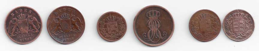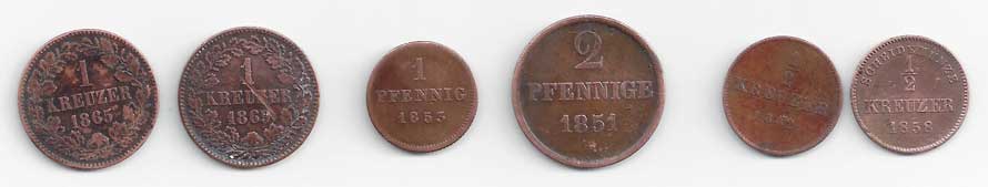 117. Baden: 1 Kr 1865, 1869, KM:242, Bavorsko: 1 Pf 1853, KM:420