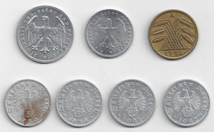 3.říše, 50 Pf 1939J-2x, 1941 G, 1942 F, KM:96 7 ks