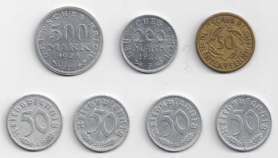 119. 500 M 1923 F, KM:36, 200 M 1923 F, KM:35, 50 Rentenpf. 1924 A, KM:34