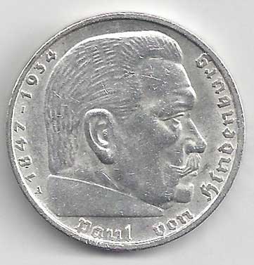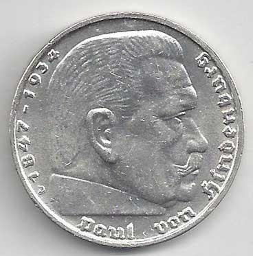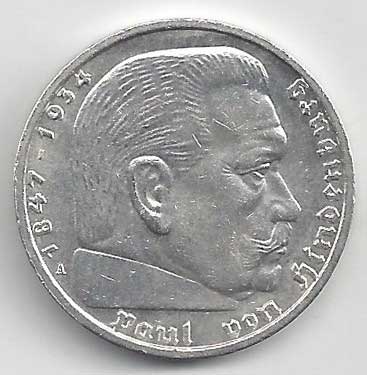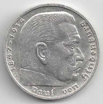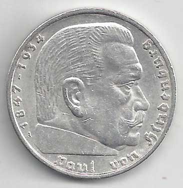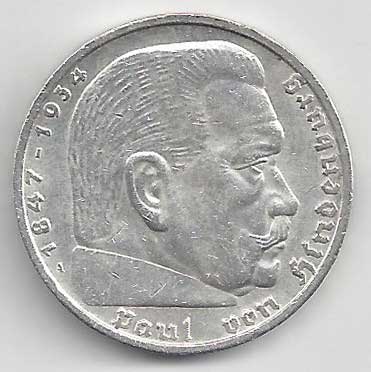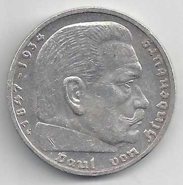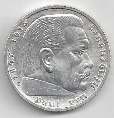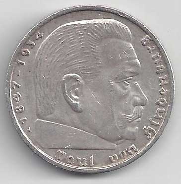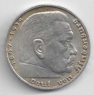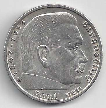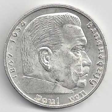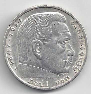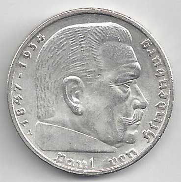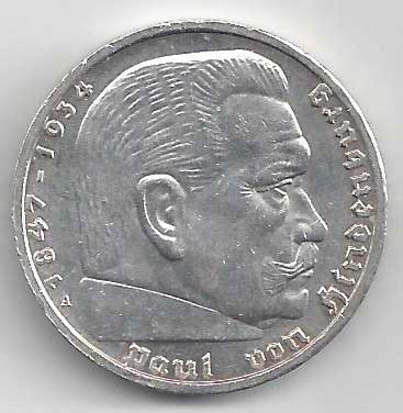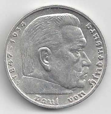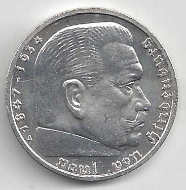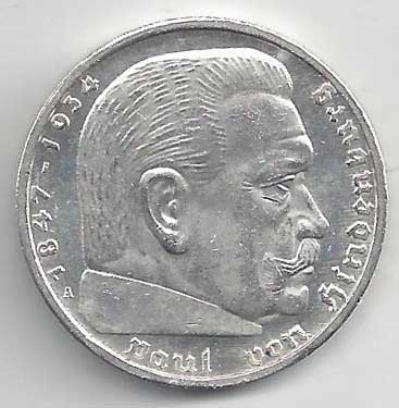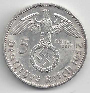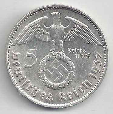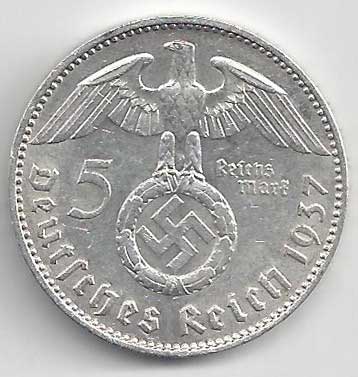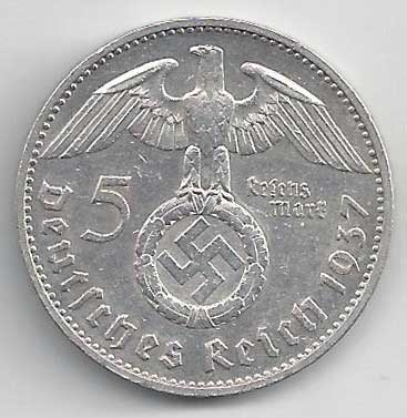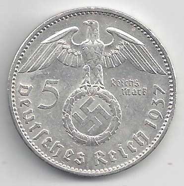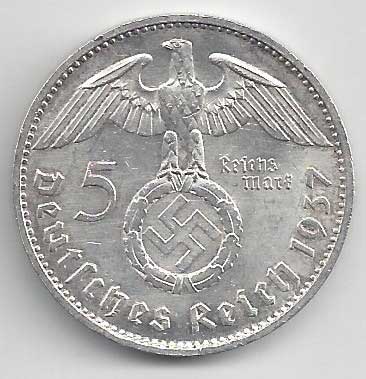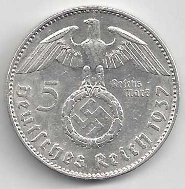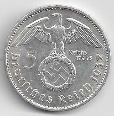 138. 5 Reichsmark 1937 J, KM:94 1/1 160,- 160,-