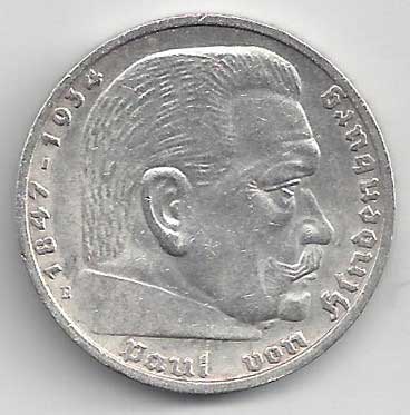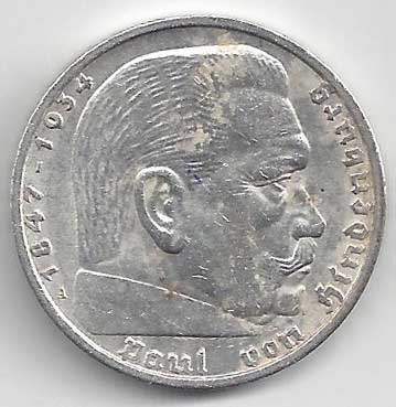 133. 5 Reichsmark 1937 E, KM:94 1/1 160,- 160,-