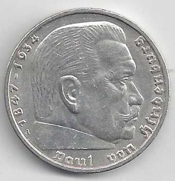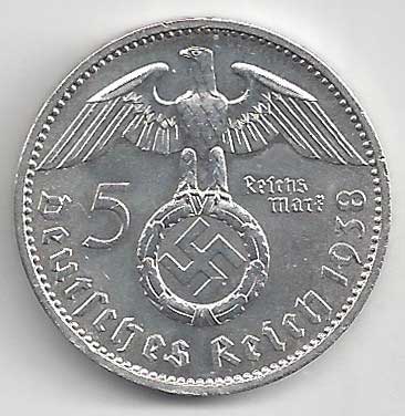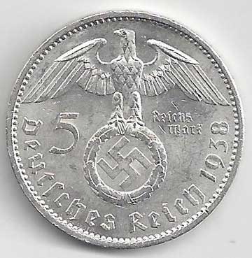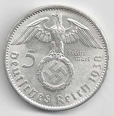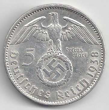 150. 5 Reichsmark 1938 A, KM:94 +1/1+ 160,- 160,-