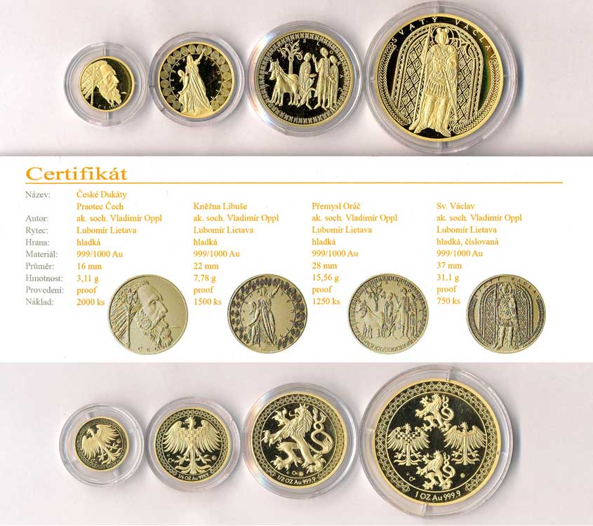 | 7. | Praotec Čech, kněžna Libuše, Přemysl Oráč, sv.Václav, sada České dukáty,