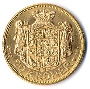 | 14. | 20 Kroner 1914 VBP, Christian X. 1912-1947 | 0-1 | 19800,- | 19800,- |