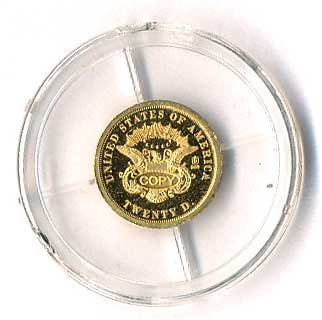 | 22. | 20 Dollars 1849, zmenšená kopie, Au585, 0,5g | PROOF | 700,- | 1600,- |
