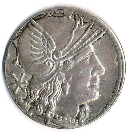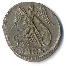| 25. | Hlava Romy v helmě, vlevo hvězda / Jupiter držící žezlo, řídící cválající kvadrigu,