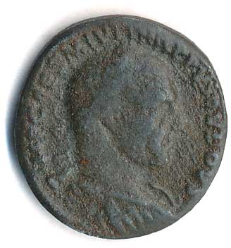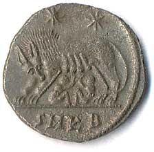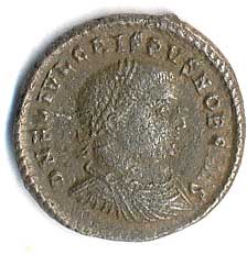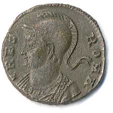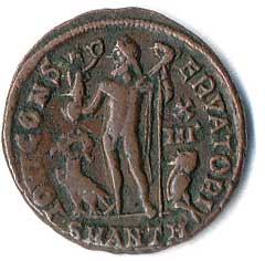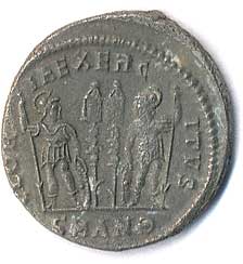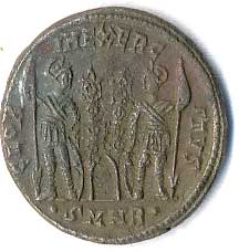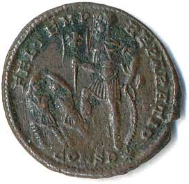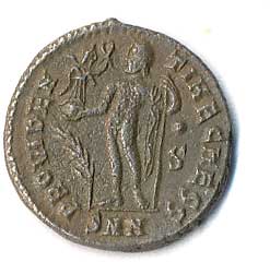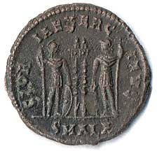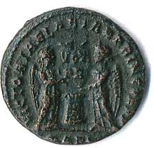| 45. | AE 3 - stojící Jupiter, drží Victorii a žezlo, u nohou palmová ratolest, v poli