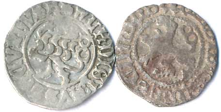 | 56. | Peníz se lvem, čtyřráz, jako Radoměrský 2, v horní a spodní řadě