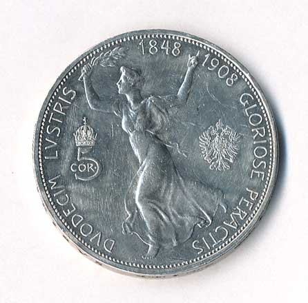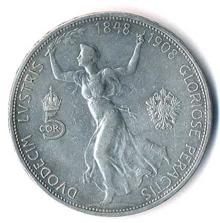 | 304. | 5 Koruna 1908, jubilejní, 60 let vlády | 1-1- | 720,- | 760,- |