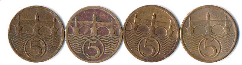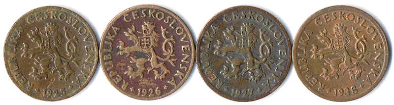 | 315. | 5 haléř 1925, 1926, 1927, 1938, 4ks | 1-2- | 50,- | 500,- |