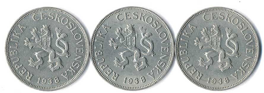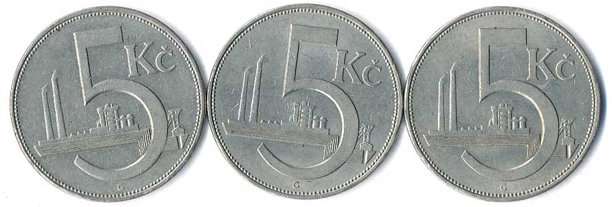 | 361. | 5 Kč 1938, 3 varianty, vlnovky z Av., vlnovky z Rv., vlnovky u sebe, 3ks | 0-1 | 260,- | 260,- |