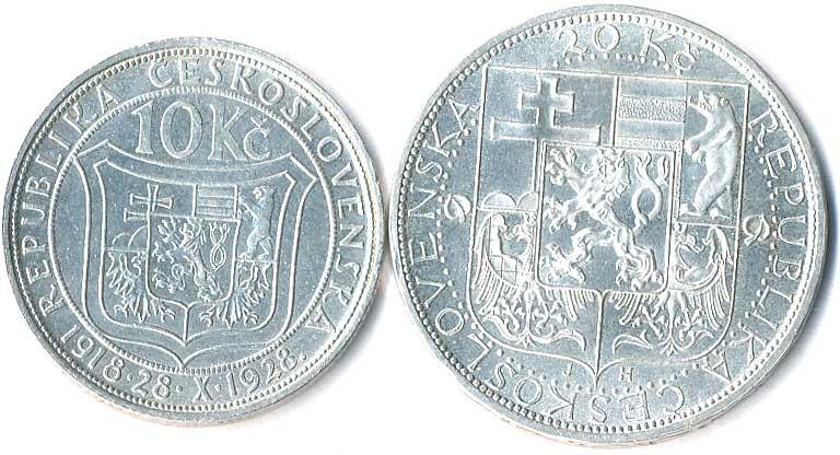 | 362. | 10 Kč 1928 TGM, 20 Kč 1937 TGM, Ag, 2ks | 0/0 | 440,- | 440,- |