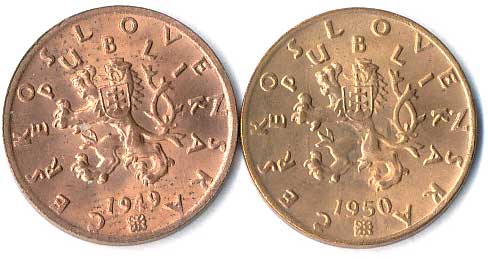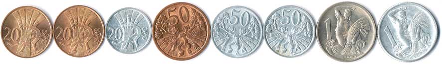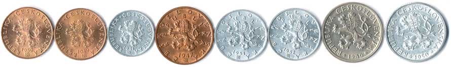 | 397. | 20 haléř 1949,50, 51 haléř 19502,51,52, 1 Kčs 1946,52, 8ks | 0/0 | 260,- | 320,- |