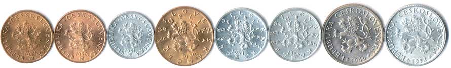 | 396. | 20 haléř 1948,49,51, 50 haléř 1947,51,52, 1 Kčs 1946,52, 8ks | 0/0 | 260,- | 300,- |