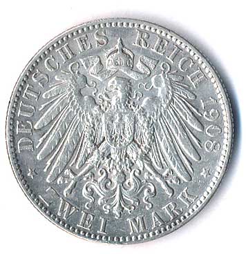 | 704. | 2 Mk. 1908 E, Sasko, Friedrich August | 1-1- | 500,- | --.- |
