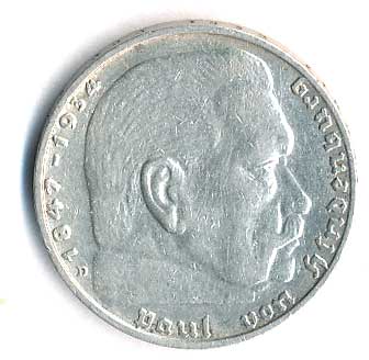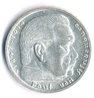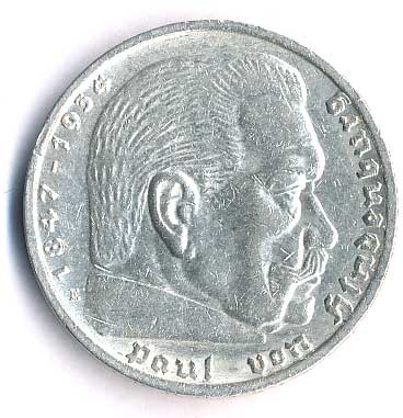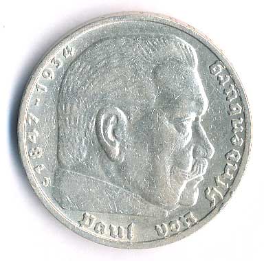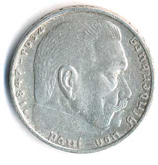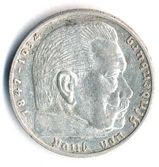 | 726. | 5 Mk. 1936 J, Hindenburg, svastika | 0-1 | 400,- | --.- |