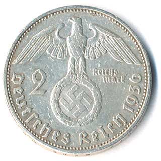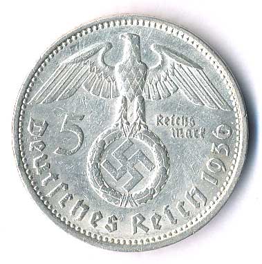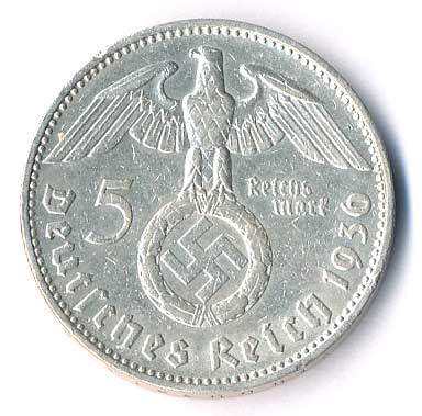 | 725. | 5 Mk. 1936 E, Hindenburg, svastika | 0-1 | 400,- | --.- |