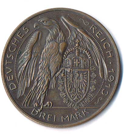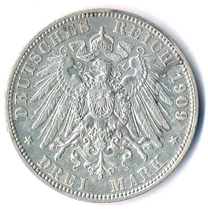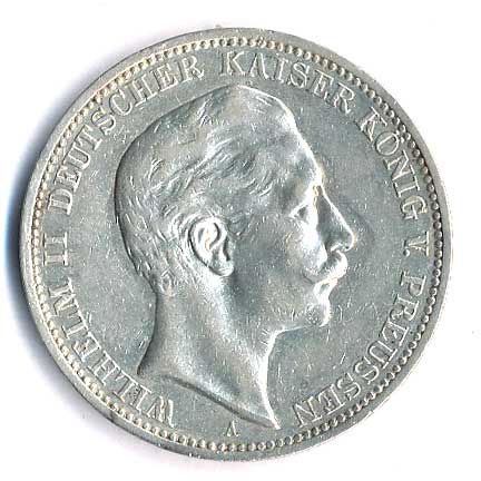 | 721. | 3 Mk. 1909 A, Prusko, Wilhelm II. | 1/1 | 400,- | 400,- |