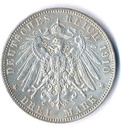 | 722. | 3 Mk. 1910 E, Sasko, Friedrich August | 1/1 | 450,- | 850,- |