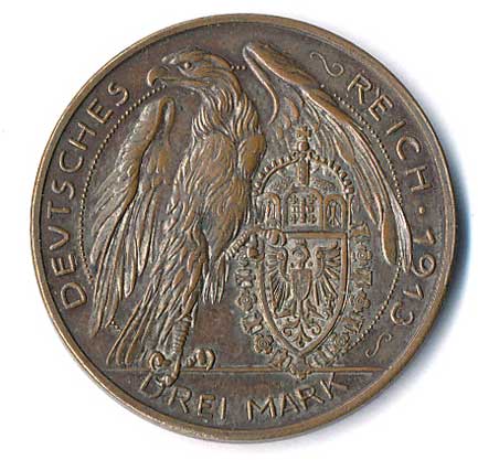 | 724. | 3 Mk. 1913, Prusko, Wilhelm II., zkušební ražba, sign.Karl Goetz | 1/1 | 1500,- | --.- |