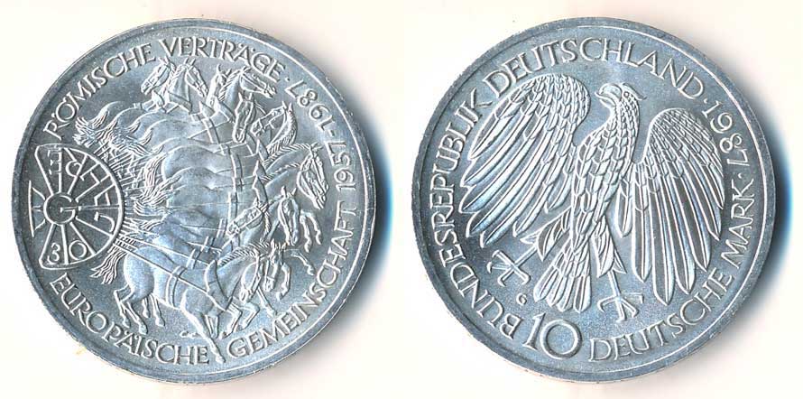 | 728. | 10 Mk. 1972 G, 30.výročí Římské smlouvy | 0/0 | 300,- | 900,- |