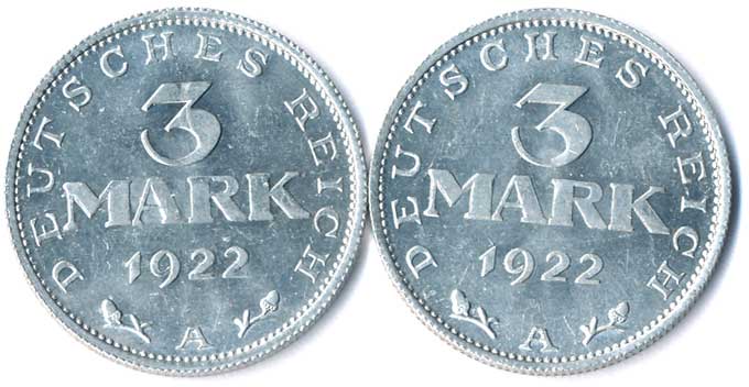 | 730. | 3 Mk. 1922 A, 2 typy, orlice s opisem a bez opisu, 2ks, téměř | 0/0 | 50,- | --.- |