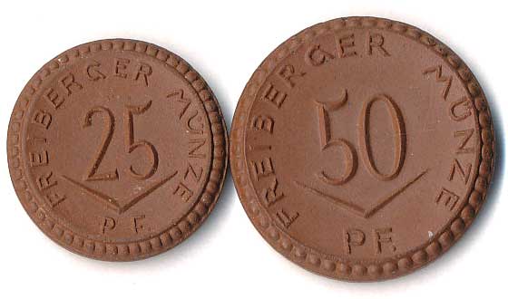 | 733. | 25 a 50 Pf. 1927, Freiberg, hnědý porcelán, značeno Míšeň, 2ks | 0/0 | 80,- | 100,- |