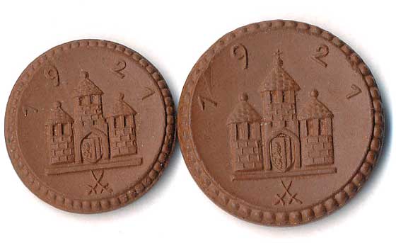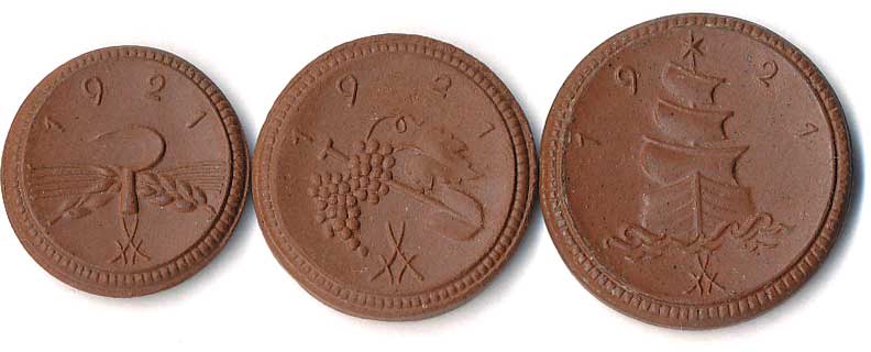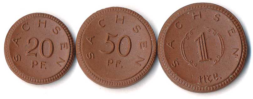 | 734. | 20, 50 Pf. 1921, 1 Mk. 1921, Sasko, hnědý porcelán, značeno Míšeň, 3ks | 0/0 | 100,- | 150,- |