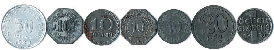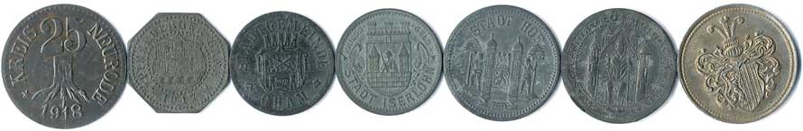 | 738. | Nouzové mince, neurčeno (skeny na: http://numismatika.cz/), 7ks | - | 120,- | 160,- |
