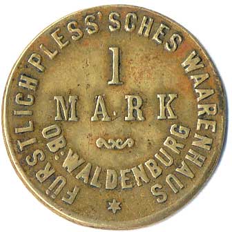 909. 1 Mark - Furstlich Pless’sches Waarenhaus-Ob.Waldenburg / číslice 5.,