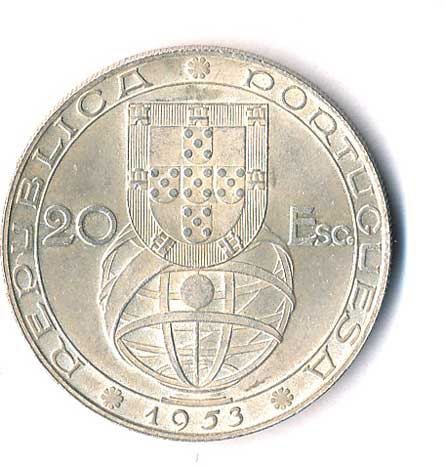 910. 20 Escudos 1953, finanční obnova, Ag 0/0 700,- --.-