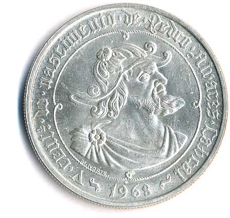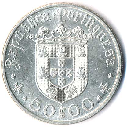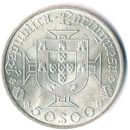 911. 50 Escudos 1968, 500.výročí narození Pedra Alvarese Cabrala, Ag 0/0 330,- --.-