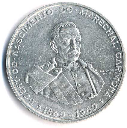 913. 50 Escudos 1969, 100.výročí narození maršála Carmony, Ag 0/0 330,- --.-