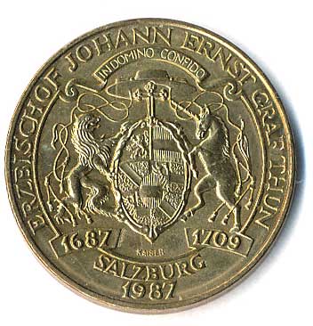 916. 20 Schilling 1992/1987, arcibiskup Johann Ernst Graf von Thun, 300 let nástupu 0/0 50,- 50,-