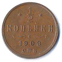 930. 1/2 Kopějka 1909, patina 0/0 70,- --.-