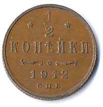 931. 1/2 Kopějka 1912, patina 0/0 70,- --.-