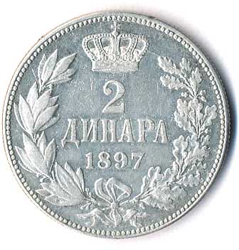 957. 2 Dinara 1897, Ag, téměř 1/1 280,- 360,-